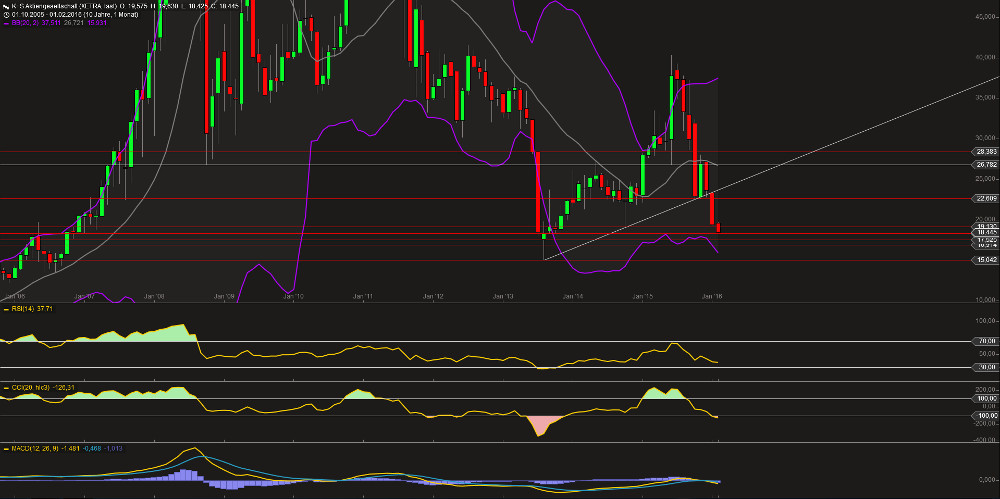 Die Daimler-Aktie fällt "wider Erwarten" auf 45 Euro. Analyst XY stuft Daimler von "strong buy" auf "buy" zurück, hält sie aber (angeblich) nach wie vor für ein lohnendes Langzeitinvestment. Er empfiehlt "Kaufen" bzw. Nachkaufen und nennt (pseudo-)fundamentale Gründe wie niedriges KGV, hohe Dividende, hohe Marktchancen, zukünftige Umsatzsteigerungen, Aktienrückkäufe, "Ende der Krise" oder Ähnliches. (An diesem Punkt sind wir jetzt.)