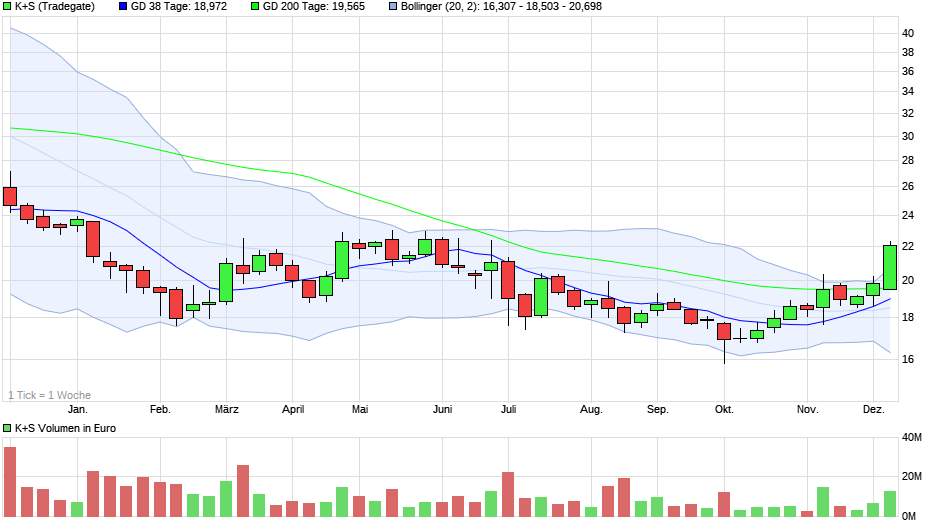 Ja, die Nikolausbescherung ist bisher recht ordentlich ausgefallen und reicht nun schon fast bis an das für mich derzeitig faire Kursniveau 2016 von ca. 23 Euro heran. Sollte die Weihnachtsbescherung nochmals sehr üppig ausfallen, dann würde ich sagen, daß fundamental derzeit Kurse über 23-25 Euro erst noch durch Fakten belegt werden sollten. Ob dies noch dieses Jahr geschieht, ist sehr fragwürdig. Allerdings schließe ich nach wie vor eine Mitteilung über eine weitere Versenkerlaubnis noch in diesem Jahr nicht aus.