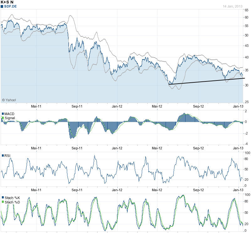 den Kurs von Metro an, sieht ähnlich aus wie der von K+S, nur das er paar wochen weiter ist! In den letzten 3 Monaten wurde dort der leichte Aufwärtstrend 3 mal erfolgreich getestet (fast ein viertes Mal, das würde bei K+S noch bevorstehen) und dann in wenigen Tagen kräftig aufwärts! wir sind jetzt bei dem dritten Test...ich hoffe der hält! aber scheint so...