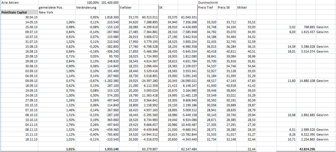 Mittel = (Wert der gehaltenen Aktien vorher + Wert der Veränderung zum aktuellen Kurs) / Gesamtzahl der nun leerverkauften Aktien