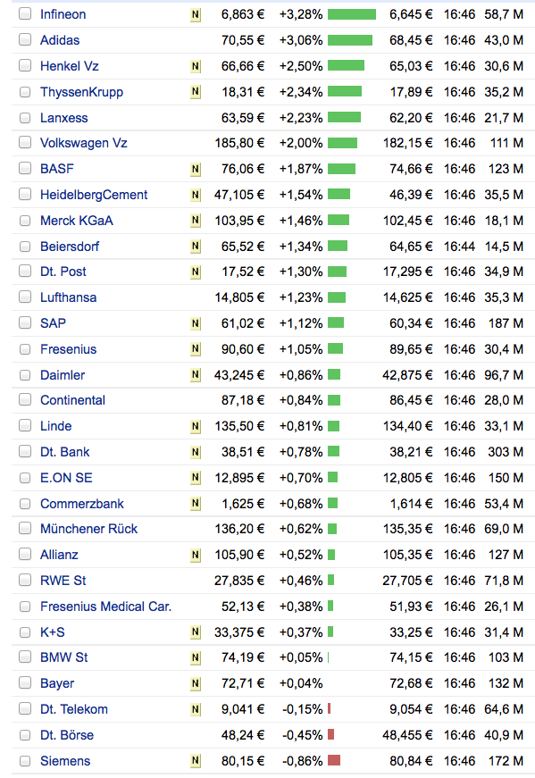 Klar kann es hier, sollte der DAX konsolidieren, abwärts gehen. Dann rauscht aber auch alles andere ab und es ist (fast) egal, in welcher Aktie man steckt. Man sollten dann rechtzeitig short sein oder an der Seitenlinie warten.