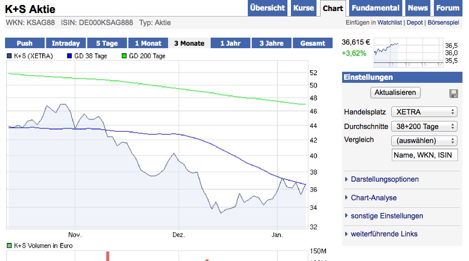 Scheint so, als wäre K+S der liebste Spielball in diesem Spielcasino ! Genauso wie ich es schon vor Wochen vorhergesagt habe. Doch keine Sorge, wenn die großen Banken ihr unteres Kursziel erreicht haben,dann wird es wieder steil nach oben gehen.....
