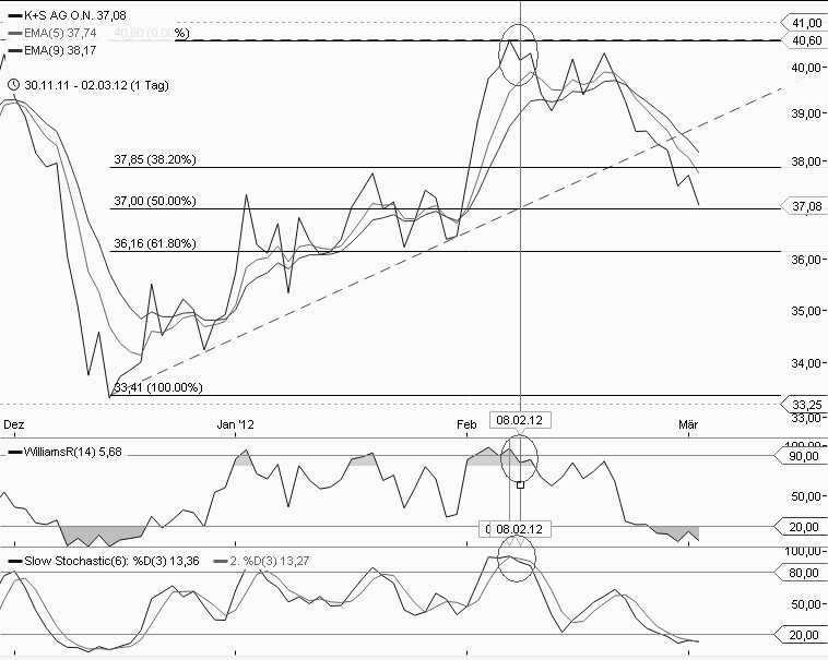 Ich hatte das Glück, bei K+S noch tiefer eingestiegen zu sein, als wir gerade stehen, arbeite aber auch mit SL, da ich mich nicht böse überraschen lassen möchte. Ärgere mich auch, dass ich vor 4 Wochen nicht bei 41 raus bin, allerdings wurde da ja erst ein Kaufsignal generiert und nicht das Ende der Fahnenstange erreicht.