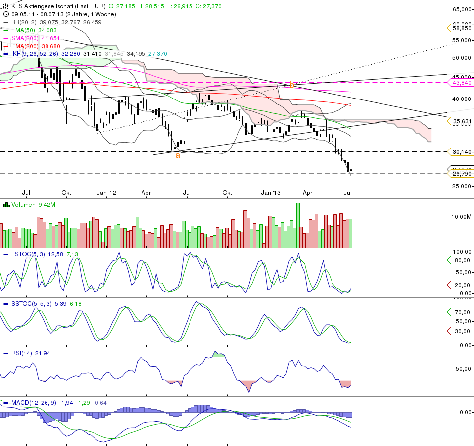 K+S hat im Intraday-Bereich bei 27,90€ wieder die Wende Richtung Süden gemacht! GANZ SCHLECHT!!