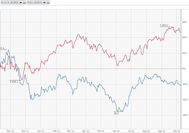 Schon lange nicht mehr so ein selbstgerechtes, besserwisserisches, und dazu hirnloses Geschwafel gelesen. Wem es egal ist, ob er "bei 29, 33 oder 39 einsteigt" und seine "Anlagen erst ab 5 bis 10 Jahren beurteilt", der braucht sich allerdings nicht um Trends, Entwicklungen, Erfolgskennziffern, Indikatoren, Unternehmensergebnisse, Prognosen usw. kümmern. Ob das als Anlagestrategie schlau ist, und ob ich mit so einer Haltung auch noch in Foren rumprotzen und alles andere als "Mist" titulieren würde? Ich denke, der Begriff "Ignoranz" ist in diesem Fall wirklich zu eng gefasst. Im übrigen scheint das alles auch kein sonderlich erfolgreiches Erfolgsmodell zu sein, wenn man sich K+S im Vergleich mit der DAX-Jahresperformance anschaut...