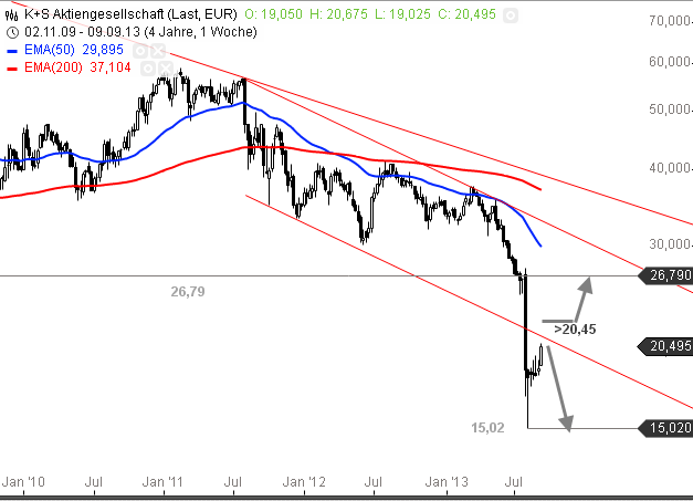 FRANKFURT (dpa-AFX) - Die Aktie von K+S ist am Montag trotz anhaltend skeptischer Studien an die Dax-Spitze geklettert. Am Nachmittag verteuerten sich die Anteile an dem Dünger- und Salzhersteller um 7,02 Prozent auf 20,30 Euro. Der Dax legte nur 0,09 Prozent zu.