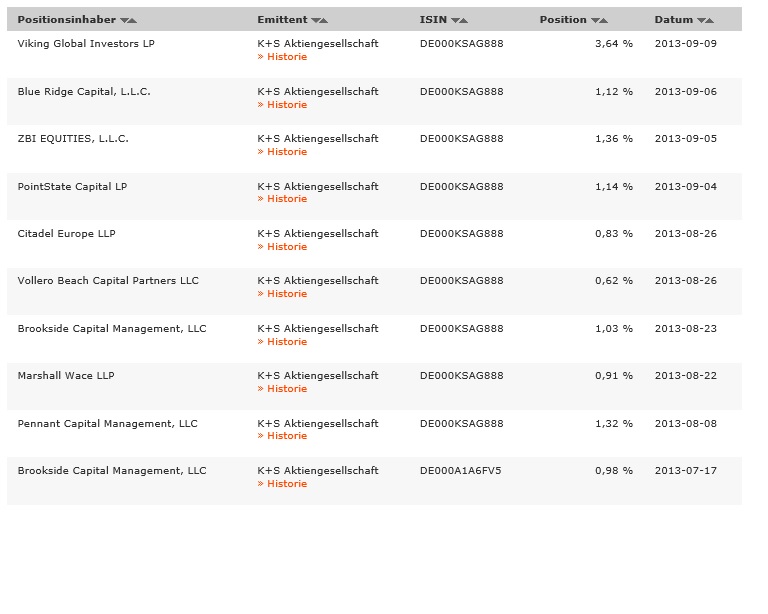 http://www.ariva.de/news/...es-Trading-Act-with-the-objective-4769798 Stimmrechtsanteile: K+S Aktiengesellschaft: Correction of Publication at 30 August 2013 / Release according to Article 26, Section 1 of the WpHG [the German Securities Trading Act] with the objective