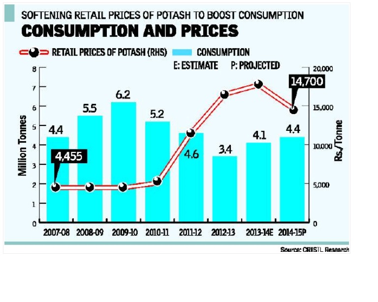 While failing to make a forecast for the level at which prices will fall too, he flagged a price or about $330 a tonne for potash delivered to the Chinese border as a "guideline" level.