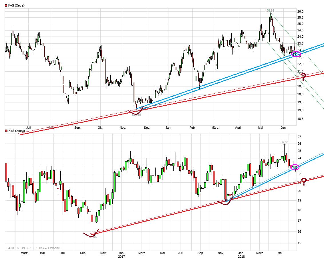genaugenommen ist das ja auch schon alles zigfach erwähnt, aber - auch das ist ja gerade gestern noch mal durchgekaut worden, die Aktionäre haben ks zu Jahresbeginn bei den Kursen sehr viel Vorschuss gezollt, da war nach Jahren der Enttäuschung die Erwartung, dass nun endlich mit besseren Kalipreisen auch deutlich bessere Kurse kämen, dass Kanada die grosse Wende bringen würde, und nun -beginnend mit den schwachen 2018 -Zahlen belegt jede neue Nachricht- und es sind dann ja auch immer eher negative news- dass der Optimismus einmal mehr enttäuscht wird.