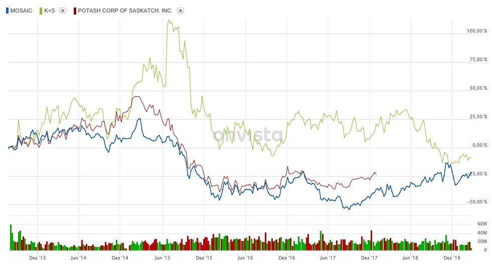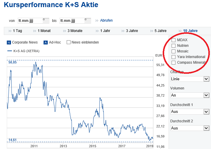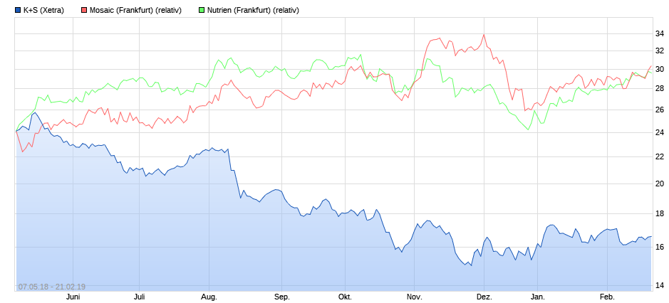 Auch stellt sich die Frage, ob und welcher Vergleich mit der "Peer" hier angestellt wird. Wenn dann lese ich meist von Nutrien oder Mosaic, dabei gibt es außer bei MOP kaum Berührungspunkte mit den beiden Unternehmen. ich empfehle mal die Produktpalette von K+S mit denen von Mosaic und Nutrien zu vergleichen, dann wird schnell klar dass der Vergleich bei aller berechtigten Kritik an der Führung von K+S hinkt.