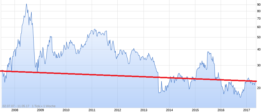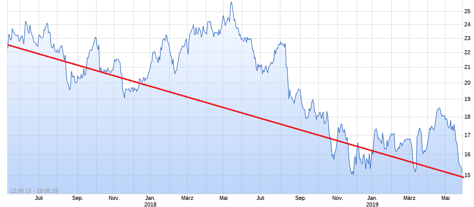 ks wird mithin noch lange ein Zockerwert bleiben, genau das impliziert die Aussage n von lohr. Hatten wir in den letzten Jahren in der Spitze noch Kurse von 25 E wird das 2019 kaum möglich sein. Ich denke zwar, dass die Aktie aktuell leicht unterbewertet ist- jedenfalls nach meinen Bewertungsmodellen, aber selbst bei besserer Börse werden wir weit unter den Höchstkursen 2018 bleiben. Immerhin deutet das 1. Quartal dahin, dass dieses Jahr die Schätzungen der Analysten erreicht werden könnten. Solange aber die ebitda - range derart anspruchlos ist, wird kaum jemand den Baissiers entgegenhalten. sicher derzeit das grösste manko der Aktie, solange lohr selber die Trauben derart tief hängt, wird kaum ein Aktionär ihm mehr zubiligen als er sich selbst.