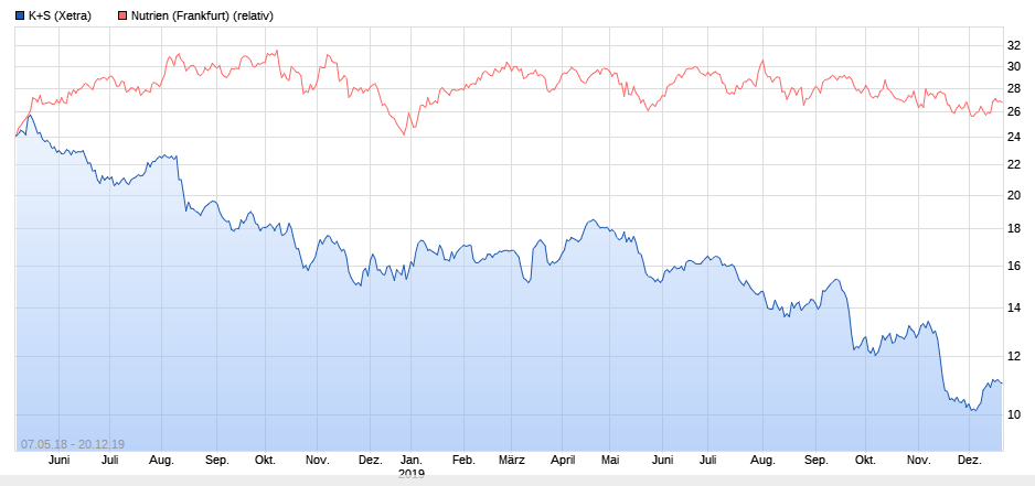 "Irgendwie ist hier nicht manchen klar, dass die Aktiennnotierung eines Rohstoffförderers direkt mit dem Rohstoffpreis gekoppelt ist. Diese Abhängigkeit kann man sogar als gehebelt betrachten. Fällt der Preis des Rohstoffs, sinkt der Preis der Aktie überproportional. Steigt der Preis des Rohstoffs, geht der Preis der Aktie im stärkeren Maße hoch. K+S ist ein Rohstoffförderer. Das sind Nutrien, Mosaic, Uralkali auch. Ihre Börsenkapitalisierung ist auch schlecht geworden"