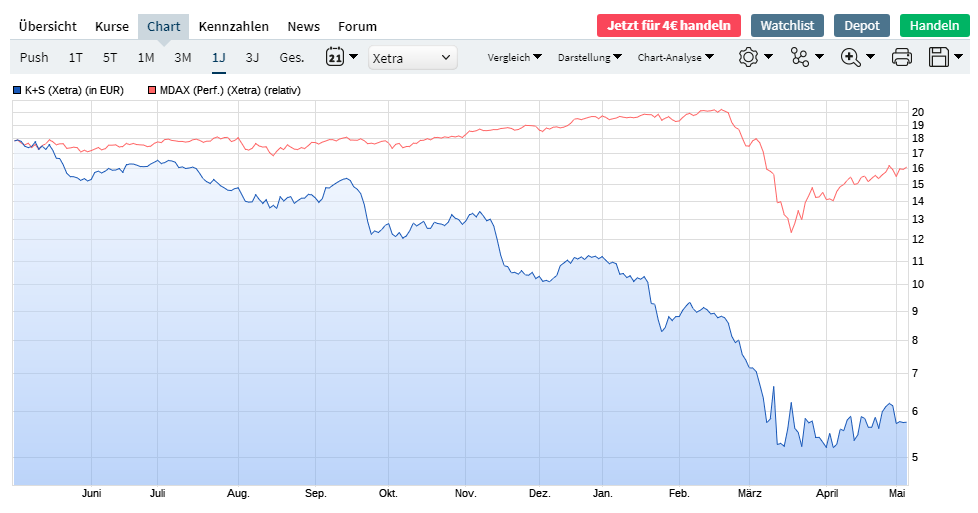 der K+S-Aktie der Entwicklung des MDAX im Vergleichszeitraum,