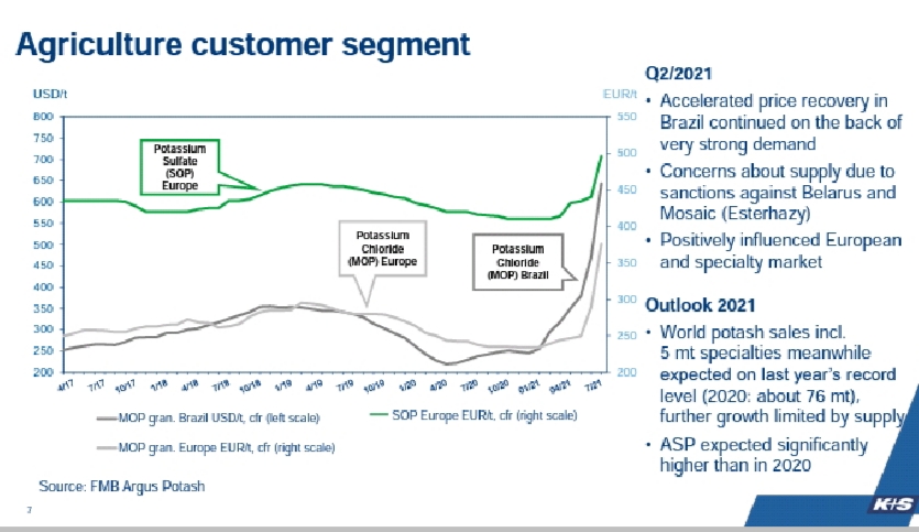 Schlägst auf Europa Preiserhöhungen auf, die so nicht realisierbar sind. Die 150€/t Übersee dürfte auch viel zu viel sein. Wären 180 USD Preisaufschlag. Bei K+S sind die Preise überhaupt nicht mit den Spotpreisen zu vergleichen. Warum?