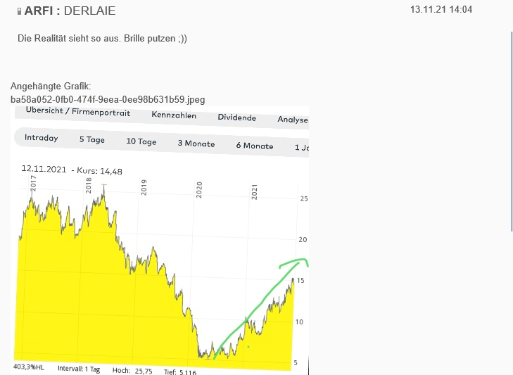 Wer aber auf der anderen Seite im Wissen, dass trotz einer Preissteigerung i.H.v. 20 % innnerhalb von 3 Monaten das obige Konzernergebnis negativ ist (Quelle: III. Quartalsbericht) und mit dem Kenntnisstand, dass der Kurs der künftigen Preisfantasie geschuldet ist, nimmer müde wird, dass Management für seine Leistung zu loben, dem darf man, nein, muss man wohl eine gewissen Nähe zum Management unterstellen....