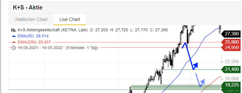 "Es könnte natürlich (und hoffentlich) sein, dass der Krieg irgendwann vorbei sein wird. Dies dürfte die Aktie stark unter Druck setzen, weil man befürchtet, dass die anderen Player wieder mitspielen. Meiner Meinung nach wäre das die perfekte Nachkaufgelegenheit bei K+S. "