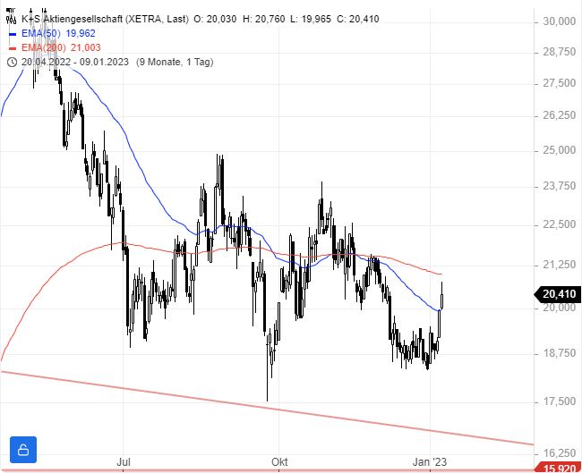 Kurs am 24. August 2022: 22,07 , Performancevergleich: ./. 9,67 % zum 06.01.2023 (Kurs: 19,94 ) Quelle: Homepage der K+S AG