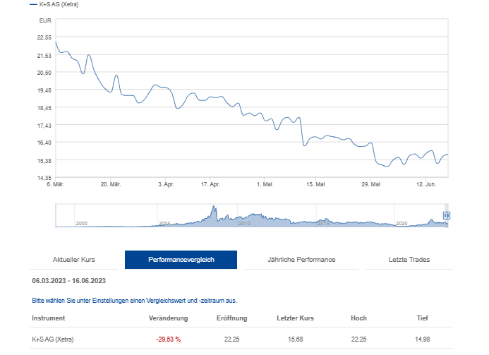Und Teil dieser allgemein sehr wünschenswerten Normalisierung sind eben auch rückläufige Kalipreise. Mit K+S und der Leistung des Managements hat das mal überhaupt gar nichts zu tun.