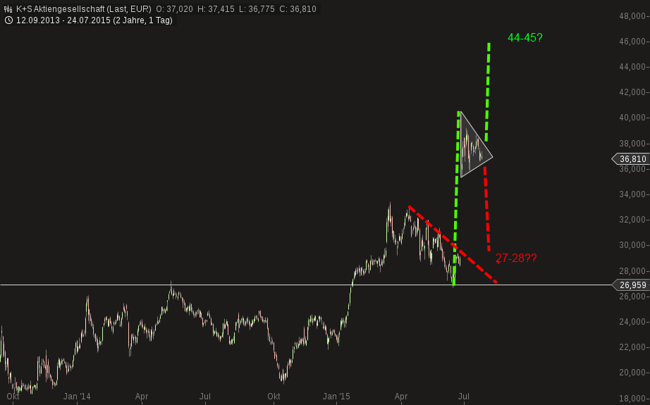 Also ...das übertragene Szenario etwa so: Irgendwelche Gerüchte, der Preis sei zu hoch und es wird abgeblasen...Kurs stürzt auf die 27-28 ab....die Leerverkäufer bekommen die Gelegenheit, sich dort einzudecken...und nach einer Weile hatte man sich dann auf eine Übernahme doch geeignigt.....41 können es nicht sein, weil die Anleger sich verarscht fühlten...aber, wenn Potash nach einer Weile das Angebot auf 44-45 erhöhen würde, dann hätte man allerseits das Gesicht gewahrt....Potash, K+S Management und die Leerverkäufer....gearscht wären die Anleger, die verkauft hatten...aber was sollen die wem dann vorwerfen können? K+S Management würde sich dann rühmen, noch höher gehandelt zu haben...