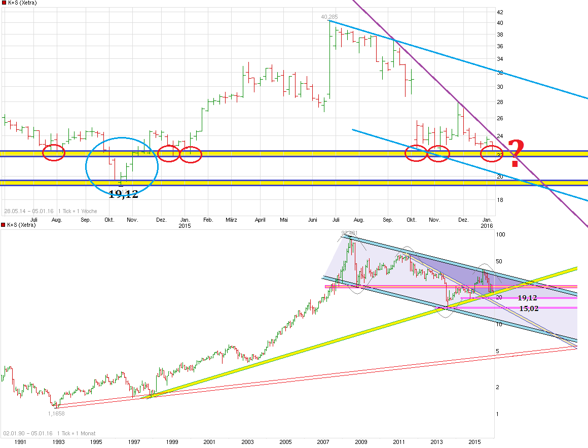 hab nix gegen Dich, aber Ihr redet alles schön. Kurs hat sich in den letzten Jahren mehr als halbiert und Ihr erzählt irgendwas von Dividendenrendite ! Das darf ich ja wohl mal in Frage stellen, wo doch die Dividende anscheinend nur dazu da ist, die Kurs-Verluste zu schmälern. Glaubt Ihr/Du im Ernst dass die Dividende weitergezahlt wird, sowie das hier läuft ?.. Hier wird ständig eine neue Hiobsbotschaft aus dem Sack gezaubert.... Kalipreise, Kartellgeschichten, Versenkerlaubnis, €/US-Dollar-Hedging, .... jede 6 Monate ein neues Katastrophen-Thema. Ende nicht abzusehen... Und Ihr,..... steigt bei 23 € ein, und denkt Ihr seid die Könige, weil Ihr nur 5% im Minus seid. Alles wird gut. Leider seid Ihr blind und seht nicht was sich hier abspielt. Aber "es wird ja bald geliefert..." Ich lach mich tot. Überhaupt nix (positives) wird hier geliefert, wie auch ! Die K&S- Führung ist ein Katastrophen-Verein (zu keinem anderen Schluss kann man kommen, wenn man sich die Details zur Möglichen Übernahme anschaut), außer kursmindernden Äußerungen kommt da nichts. Weil es nicht positives zu melden gibt !! Vorstand und AR sind fein raus mit Ihren fetten Gehältern, interessiert die doch überhaupt nicht, wie es den Inhabern (Aktionären) geht. Die Aktie ist ein Haufen Mist, die größte Fehlinvestition meines Lebens. Und Ihr redet jeden Tag einen Haufen Mist über Möglichkeiten, Hoffnungen und Wünsche... und glaubt, diese Aktie wird Euch reich machen.... lächerlich !