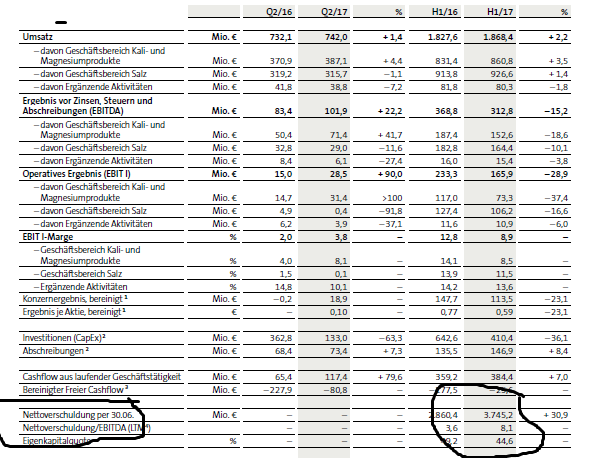 Die Abschreibungen braucht man nicht zu berücksichtigen, weil sie bis auf einen positiven (!) Steuereffekt nicht kapitalwirksam sind. Und Erhaltungsinvestitionen fallen bei einer neuen Mine kaum an. Deshalb fällt pro Jahr vorerst ein Kapitalüberschuss von rund 130 USD/t an. Das macht bei 2 Mio. Tonnen ca. 220 Mio. EUR/a."