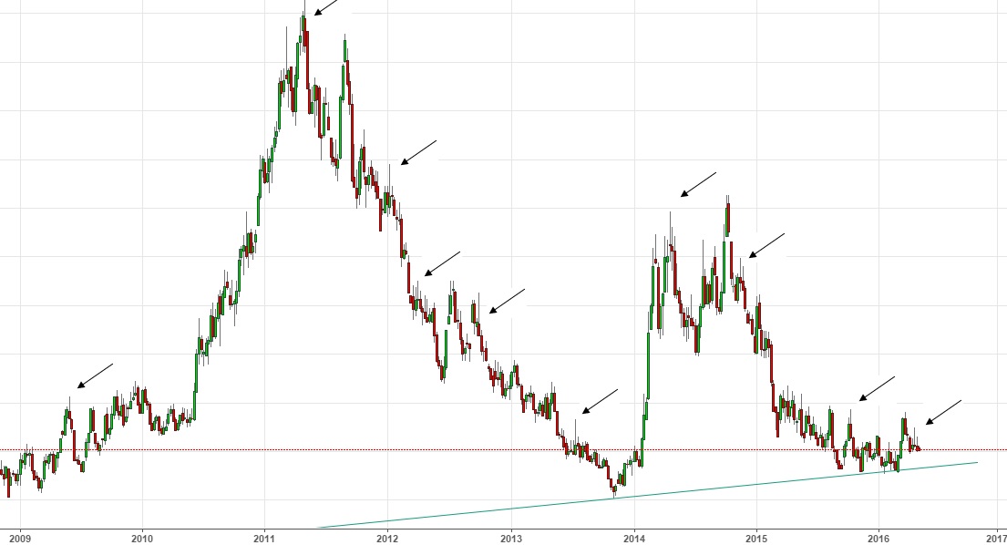 Zu den Nachrichten. Ich glaube, dass alle bekannten Nachrichten schon im Chart verarbeitet sind. Sind diese von Relevanz, steigt oder fällt er dementsprechend. Sind sie nicht von großer Bedeutung, reagiert er nicht darauf. Große Akteure am Markt haben noch weitaus mehr Möglichkeiten, auf veränderte Fundamentaldaten einzugehen, bsp. auf exakte Wetterdaten, Zugriff auf Messstationen, bis hin zum Einsatz eigener Mitarbeiter, die dann zu den Plantagen gehen und sich die Entwicklung der Früchte anschauen.