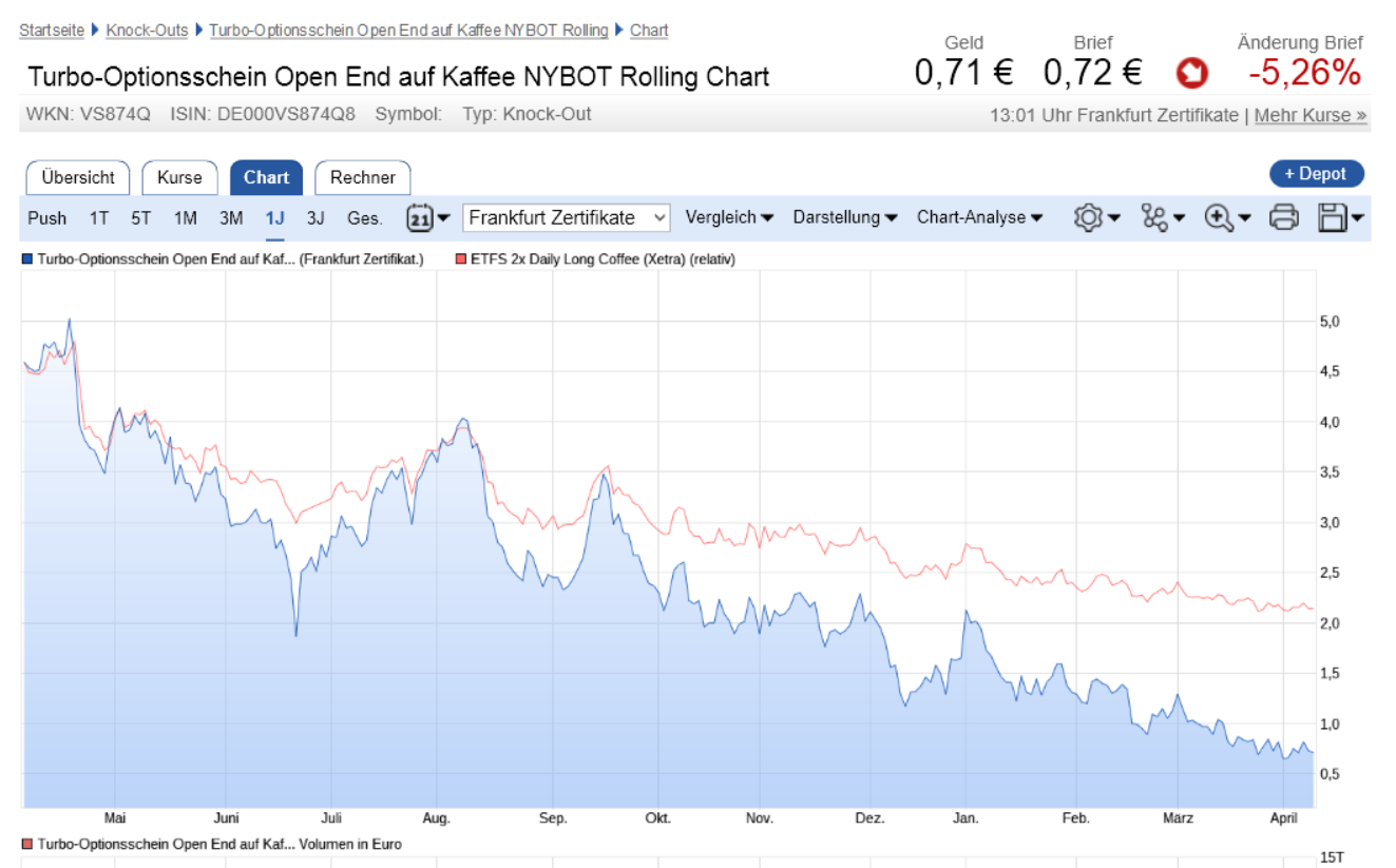 damit totalverlust eintritt, muss der kaffee weiter gewaltig abschmieren über eine lange zeit...