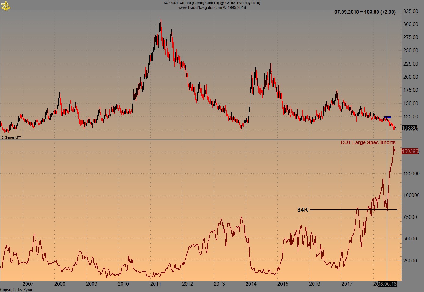 Allein desswegen würde ich das Tief bei Arabica in naher Kürze sehen:)
