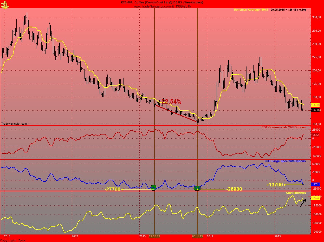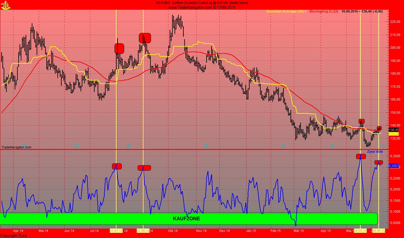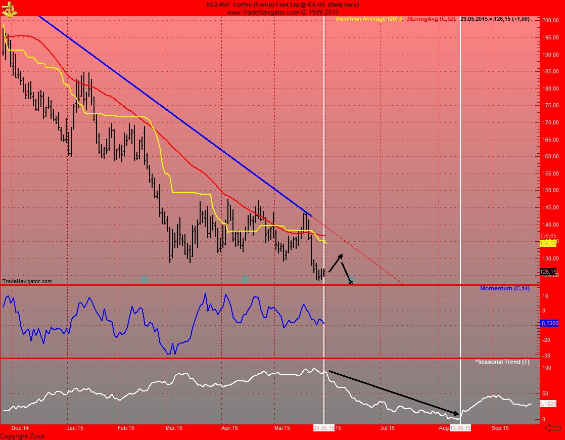 einzig klimatische einflüsse oder wetterkapriolen könnten den preis noch dieses jahr wieder kräftig ansteigen lassen. obwohl, da ist immer wieder mal was zu lesen von el nino, wassermangel in sao paulo, kaffeerost, beerenkrankheit coraçon negro.