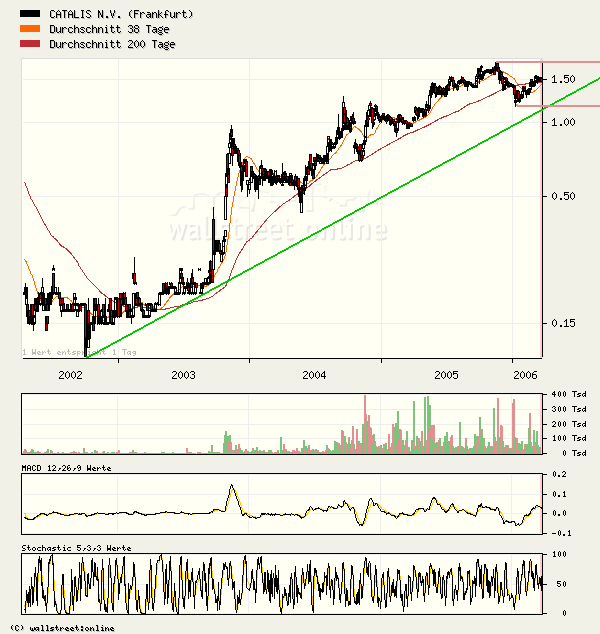 Genauso ist es bei Catalis. Hier gibts einen übergeordneten Aufwärtstrend, aber der mittelfristige Aufwärtstrend wurde schon vor ein paar Monaten gebrochen. Merkwürdigerweise (für dich) geht der Kurs seitdem seitwärts bis leicht abwärts, und erstmals seit Jahren wurde auch die 200-Tage-Linie unterschritten. Das bedeutet ja nicht dass die fundamentalen Kursziele langfristig außer Kraft gesetzt werden (sonst wär ich wohl kaum investiert), aber dadurch müssen neue Trends ausgebildet werden, und die lassen halt nach dem Bruch von Trends und Unterstützungen einige Zeit auf sich warten.