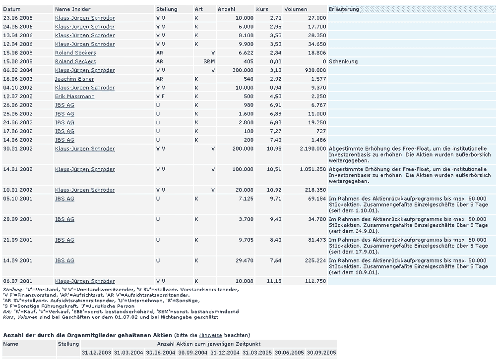 IBS AG / Sonstiges