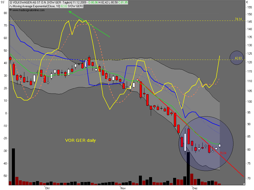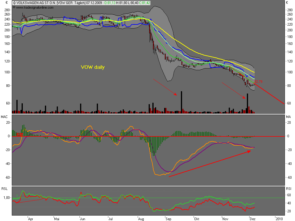 Ich denke leider, dass VW ein typisches Beispiel für eine Aktie ist, bei der man mit Charttechnik nicht viel erreichen kann.