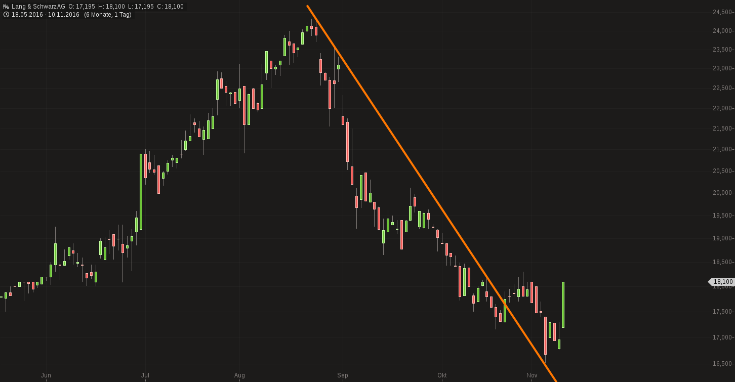 " Die nunmehr mehrmonatige Seitwärtsbewegung im Deutschen Aktienindex DAX konnte auch durch die Präsidentenwahl in den USA nicht aufgelöst werden. Vielmehr hält die Verunsicherung der Marktteilnehmer weiterhin an, so dass ein signifikanter Ausbruch bislang ausblieb. Dennoch sind wir mit dem Verlauf des vierten Quartals 2016 bisher sehr zufrieden. Aus heutiger Sicht wird das Rekordergebnis 2015 wohl jedoch nicht erreicht werden können." ergänzt Vorstandskollege Peter Zahn.