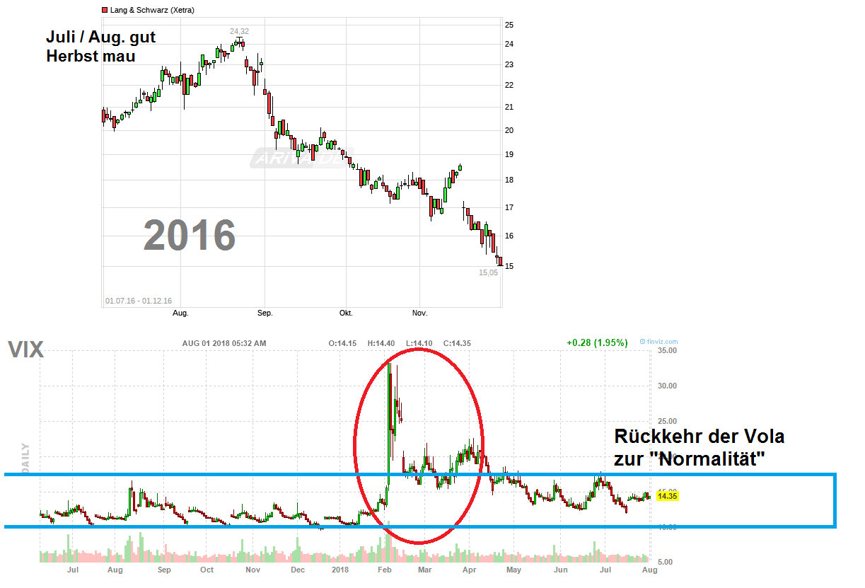 Es wurde aber auch des Öfteren gemahnt nicht zu blauäugig und zu gierig zu werden und dann irgendwann glaubt so geht es in dem Tempo weiter hoch wie in der 1. Jahreshälfte. Es wurde oft genug gesagt es läge eine sehr deutliche Überkauftheit vor, die wieder abgebaut werden müßte ( was aber noch etwas gehemmt wurde im Juni durch die DiviJäger, die bis zur HV durch ihre DiviFixiertheit mehr Abgabebereitschaft noch verhinderten. War z.B. im letzten Jahre doch genauso.). Wie weit die Konso geht ist natürlich schwer im voraus zu sagen, da niemand absehen kann wie lange die Markt-Vola nun wieder in diese sehr tiefen Regionen zurückkehrt. Sowas z.B. hatte ich Mitte Juni schon geschrieben : https://www.ariva.de/forum/...e-handelbar-270405?page=152#jumppos3805 . Von daher sollte man sich jetzt nicht nur andere User rauspicken und als böse Pusher abtun ( die es doch in jedem Aktienthread i.d.R. gibt) und die damit nach deiner Meinung an deiner Situation die Schukd tragen. Wie steht es um die Selbstverantwortung? Zuallerest immer an die eigenen Nase fassen und mal die eigene "selektive Wahrnehmung" hinterfragen, wenn man alles nurnoch rosarot sehen wollte. Man hätte ja auch (Teil-)Gewinne jederzeit mitnehmen können in der letzten Euphoriephase (was ich z.B. nutzte) .