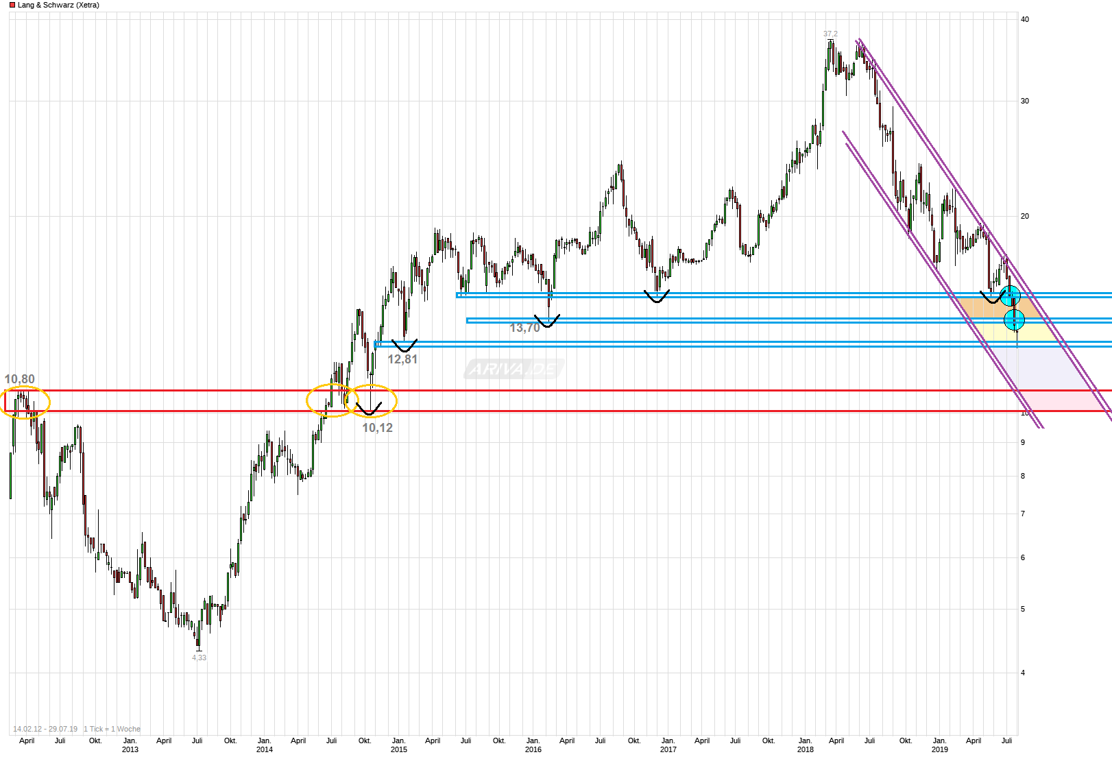 Wenn man bei 15 kauft, wären das dann etwa 9% Dividendenrendite, bei einem Finanz-Unternehmen, das dann hoffentlich in 2020 keine Rechtsunsicherheit in Steuerfragen mehr hat. Mit 5 bis 10% Dividendenrendite pro Jahr kann man geduldig warten "bis Lucie wieder tanzt".