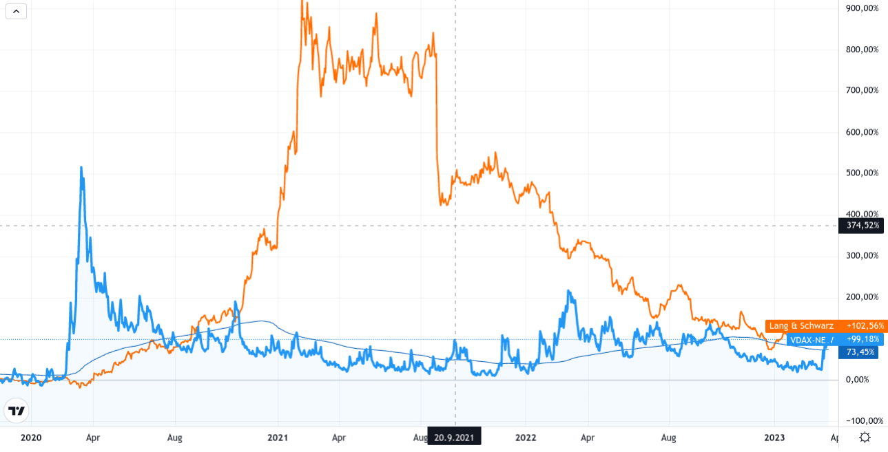 @CEOWENGFINEART: zwischen der L&S-aktie und und dem volatilitätsindex VDAX-New (blau) sehe ich keine korrelation (wechselseitige beziehung):