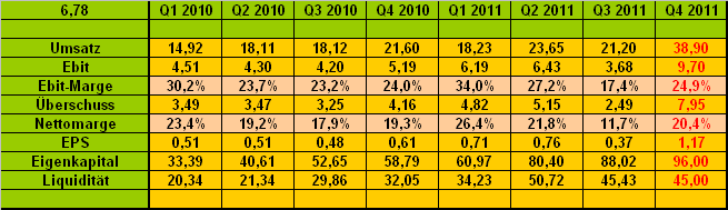 wenn sie bezahlt wird :-) aber mal im Ernst, der Vorstand hat ganz klar gesagt, dass er zwischen 20-40% Ausschütten will und 3 sehr erfolgreiche Quartale haben wir schon, von daher wird das schon. Es sollten rund 25 Mio Net profit sein geteilt durch 15 mio Aktien macht 1,66 EPS 30% davon macht knapp 60 Cent. Die Deutsche Bank rechnet mit 0,69 Euro für 2011 1,0 für 2012 und für 2013 bereits 1,33, sollte das wirklich eintreffen wäre das für 2013 bereits jetzt eine Rendite von über 15% ob das dann so kommt werden wir sehen. Ich denke aber nicht dass der CEO so Dumm ist tolle Versprechungen macht und selber Aktien kauft wie verrückt und dann nicht ausschüttet, dann wäre der Kurs der Aktie auf Dauer im A**** und so blöd wird er schon net sein. Aber die Entscheidung muss jeder selber treffen, ich habe mich dafür entscheiden, weil ich denke sie wird Kinghero nachlaufen, zudem ist Powernd bereits im Primestandard. Sollte das mit der Dividende von 1,33 wirklich kommen für 2013 dann wird der Kurs jenseits der 20 sein, das steht fest, das wäre vom aktuellen Niveau aus eine 3X und dann noch Divi.. das wäre ne Megaanlage.