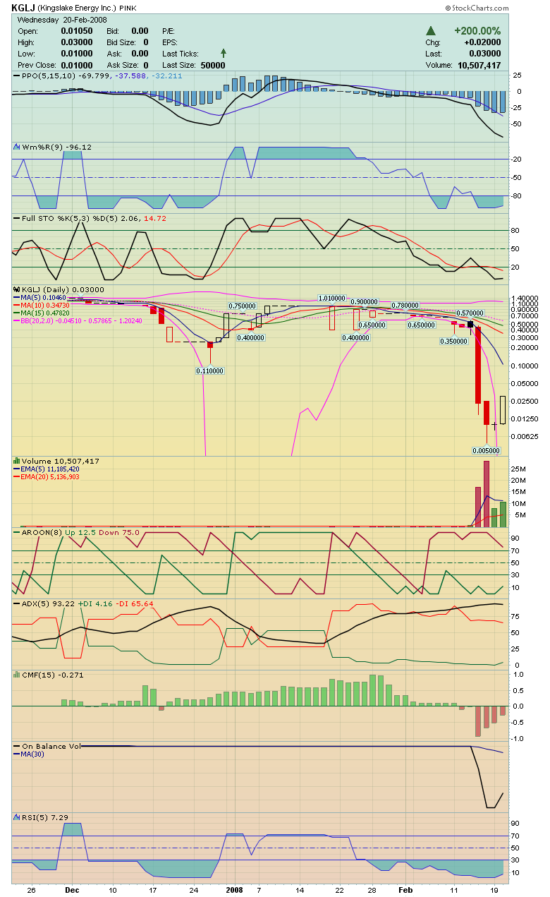 Kingslake Energy, Inc. James R. Pagnum, 210-841-5759 Fax: 210-820-2609 www.kingslakeenergyinc.com info@kingslakeenergyinc.com or Investor: TheOpeningBell Newsletter John Gernannt, 478-254-4138 EquityResearchIR.com theopeningbell@cox.net