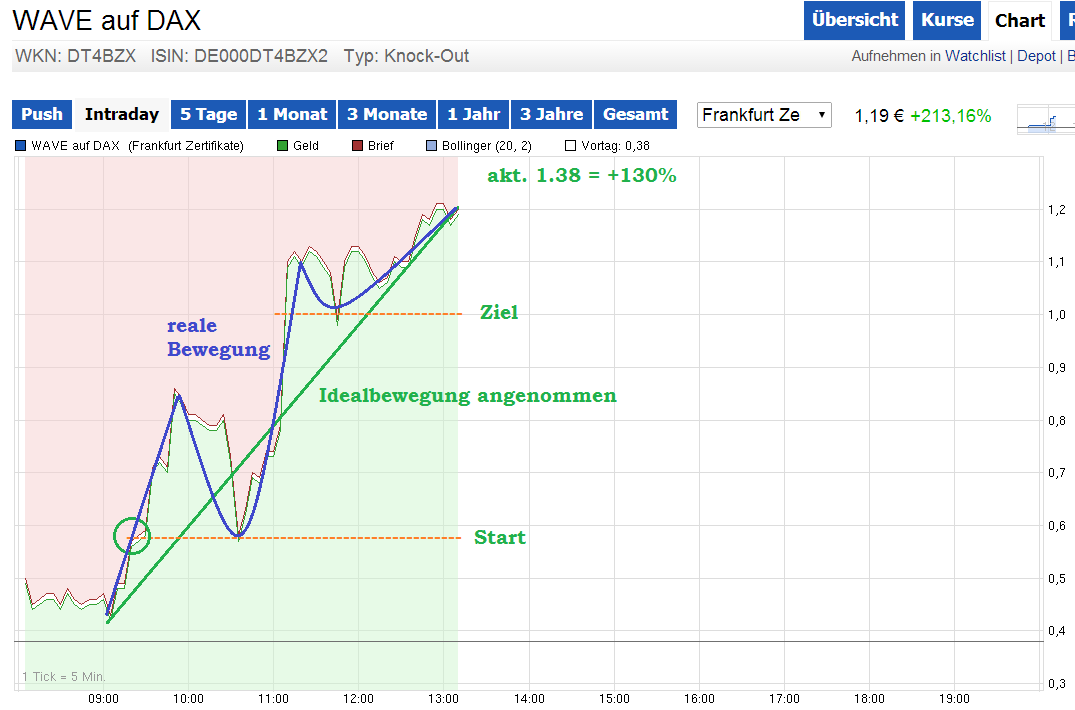 wird man durch sowas nicht auf Anhieb steinreich, denn jedes System hat seine Schwächen, z.B. können die Umschwungbewegungen des Marktes zu kurz und zu heftig für das gegebene System sein, so dass man kaum ineine Strecke reingekommen, schon wieder rauskatapultiert wird, wenn du mit Stops arbeitest, die sinnvoll gewählt sind, kann dir das egal sein und wenn du gleichzeitig "zäh" bist und dich nicht entmutigen lässt, arbeitet die Zeit für dich, denn mit einer statistischen Wahrscheinlichkeit treten immer wieder Trendstrecken außerordentlicher Länge auf, wie jüngst im Gold short, fliegst du vorher 4 mal raus und bist schon demotiviert und erwischt im 5. Anlauf so einen move der bis gestern oder so intakt war über fast was weiß ich 70-80 $ kannst du den Rest des Jahres in Urlaub fahren :-) der Markt versucht dich zu entmutigen und das Gefühl zu vermitteln, ah, das wird eh nix und dann wie aus dem Nichts tritt wieder eine endlose Trendstrecke in Aktion, du weißt nicht wann es welche sein wird, also bleibt einem nichts anderes übrig als alle der Reihe nach, nach festen Kriterien "abzuklappern" und eine ist es dann. Was dann kommt ist ebenfalls typisch, man will gleich werfen, weil man vorher so oft verarscht wurde und das ist auch sehr schwer zu erlernen, dann gaaanz ruhig zu werden, Ruhe 2. Vorname, denn das ist eine der seltenen Gelegenheiten, die einem entgleitet, wenn man zu früh würfe. Also du siehst, da arbeiten viele Generationen endlose Zeit drann, du musst an der Aufgabe langsam wachsen. Ein 3 Tage Crash Kurs, wie mal jmd. enttäuscht berichtete, "brachte nichts als Verluste", nein, du wirst ja auch nicht nach 1 Woche Dachdecker oder Schneiderin, sondern nach mehrjähriger Lehrzeit, Wanderjahren + Meisterbrief und das gilt für dieses Geschäft genauso. Es sei denn du bist ein vom Himmel gefallener Meister. Aber wer ist das schon. Gruß