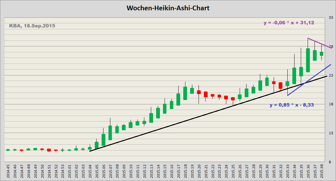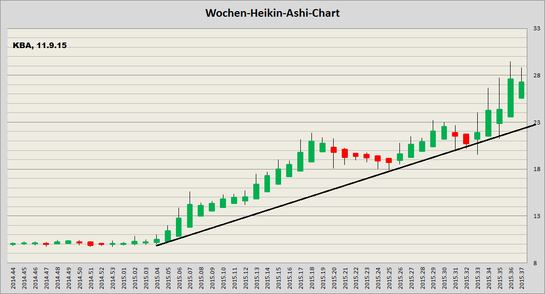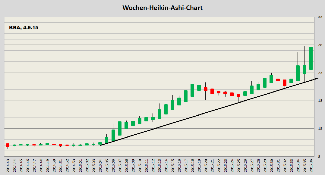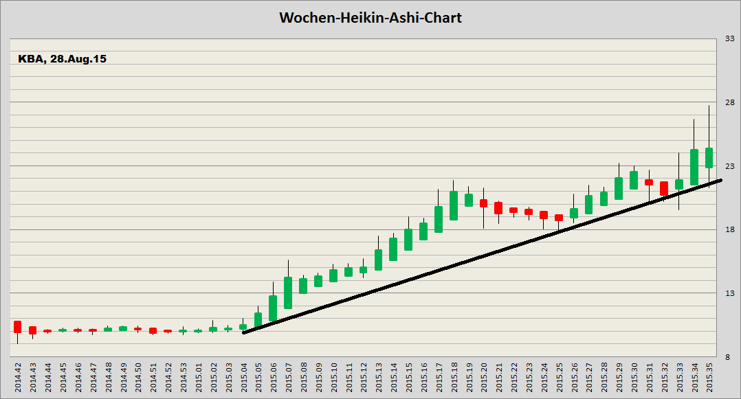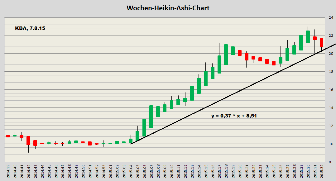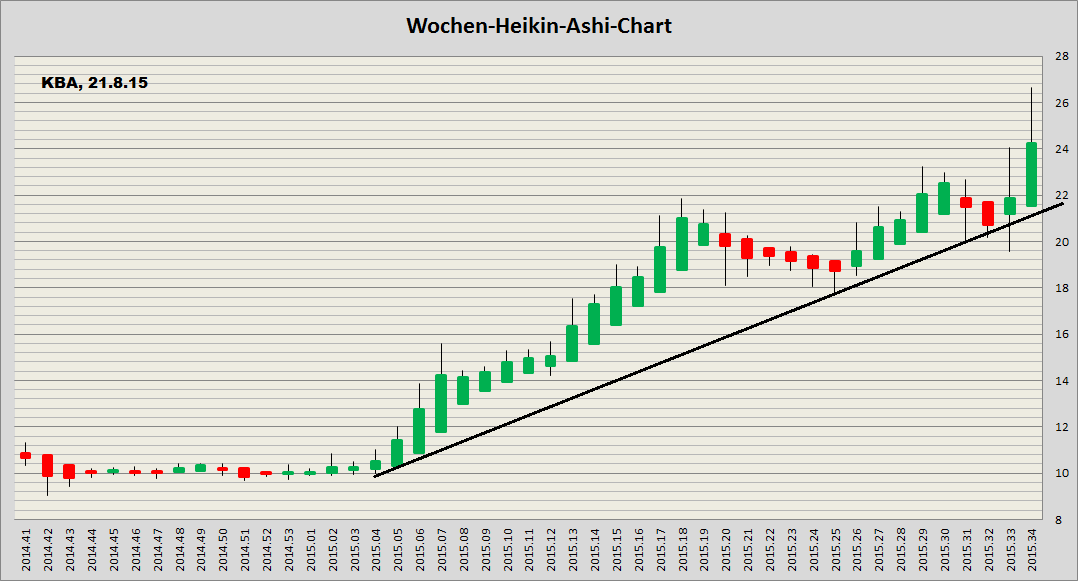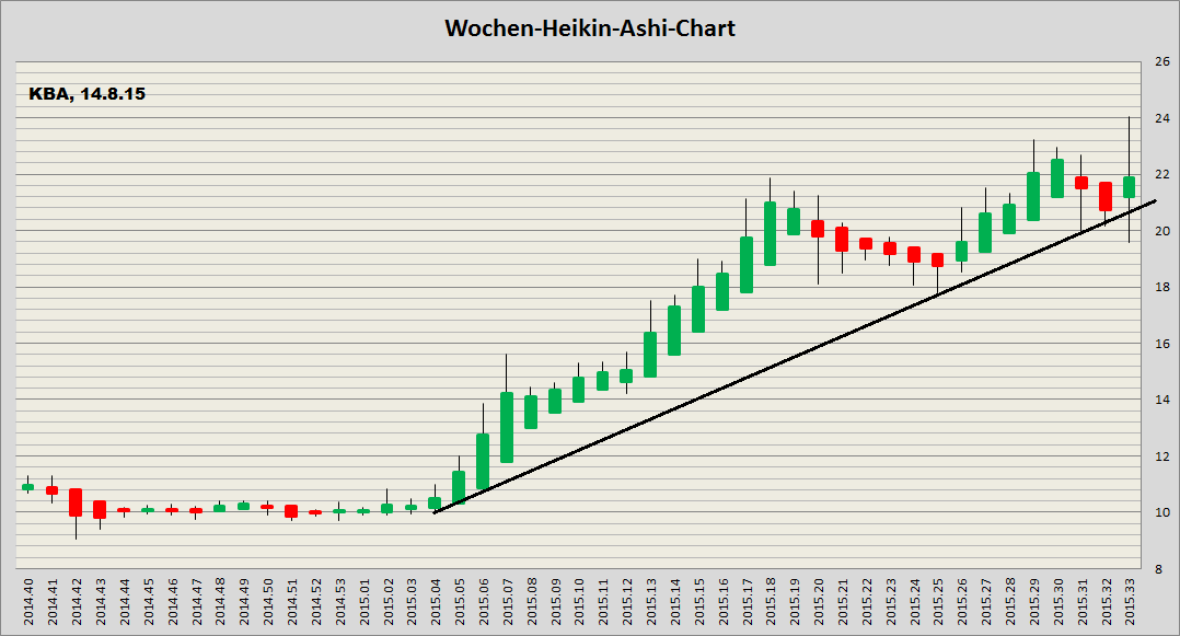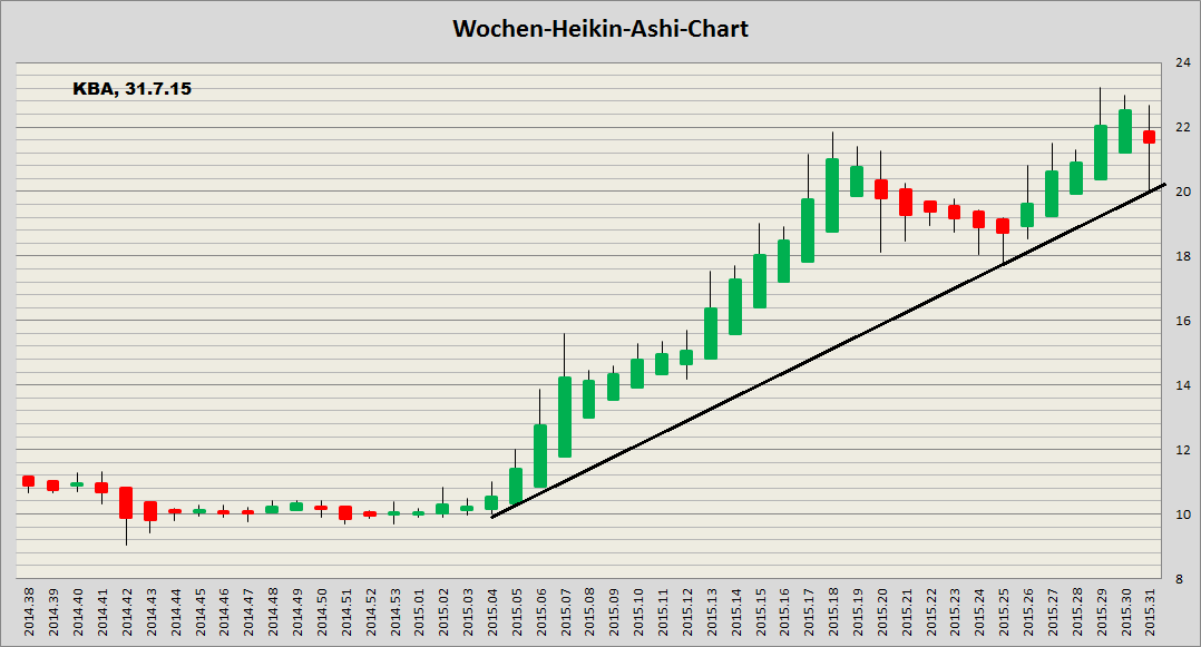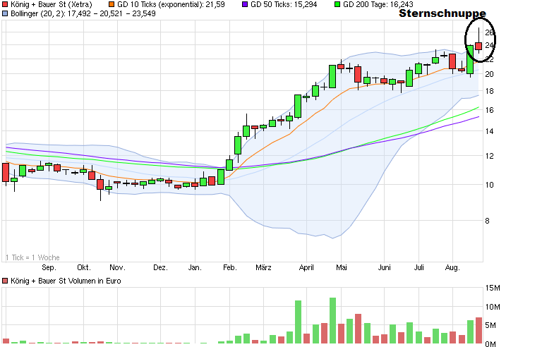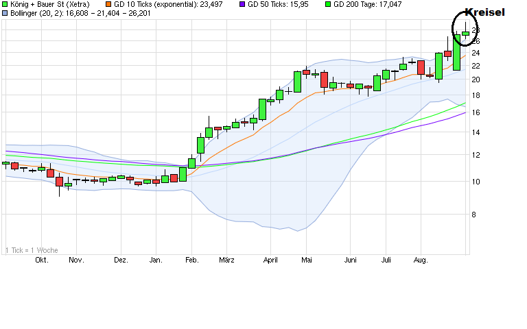 Die Gewinnprognosen sind heute tiefer als vor sieben Wochen. Der gegenwärtige Kurs ist der Unternehmens- und Marktsituation angemessen. Der technische Trendwendepunkt liegt beim Kurs von 20,50, wobei der gegenwärtige Kurs leicht darüber liegt.