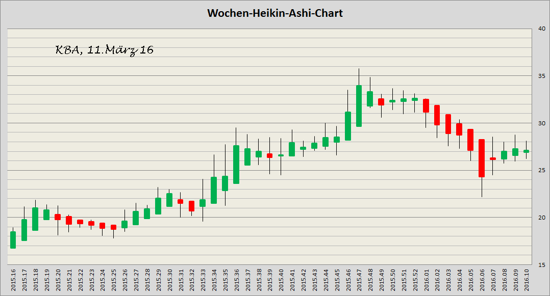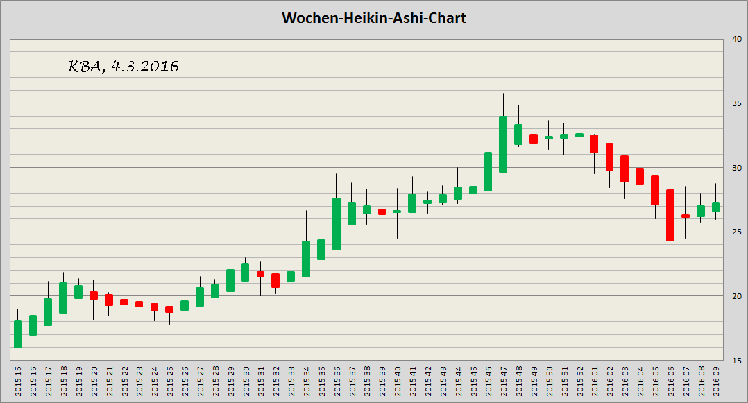 im Moment hätte man 2 KBA im Depot, Bild 1 sind die Signale, Bild 2 die Kapitalkurve im Vergleich zu Buy&Hold, alles auf ein Jahr (andere Zeiträume bringen ähnliche Ergebnisse)