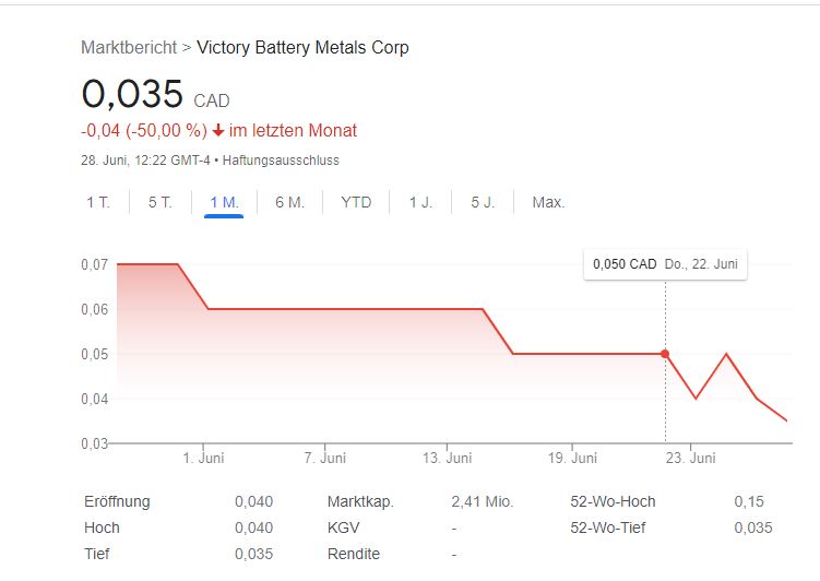 Ich habe immer ca. 20 Lithium-Firmen auf dem Schirm und verfolge deren Kurse und News sehr aufmerksam, aber keine, wirklich überhaupt keine, bietet für mich solch ein großes Chancen-Risiko-Verhältnis wie Victory.