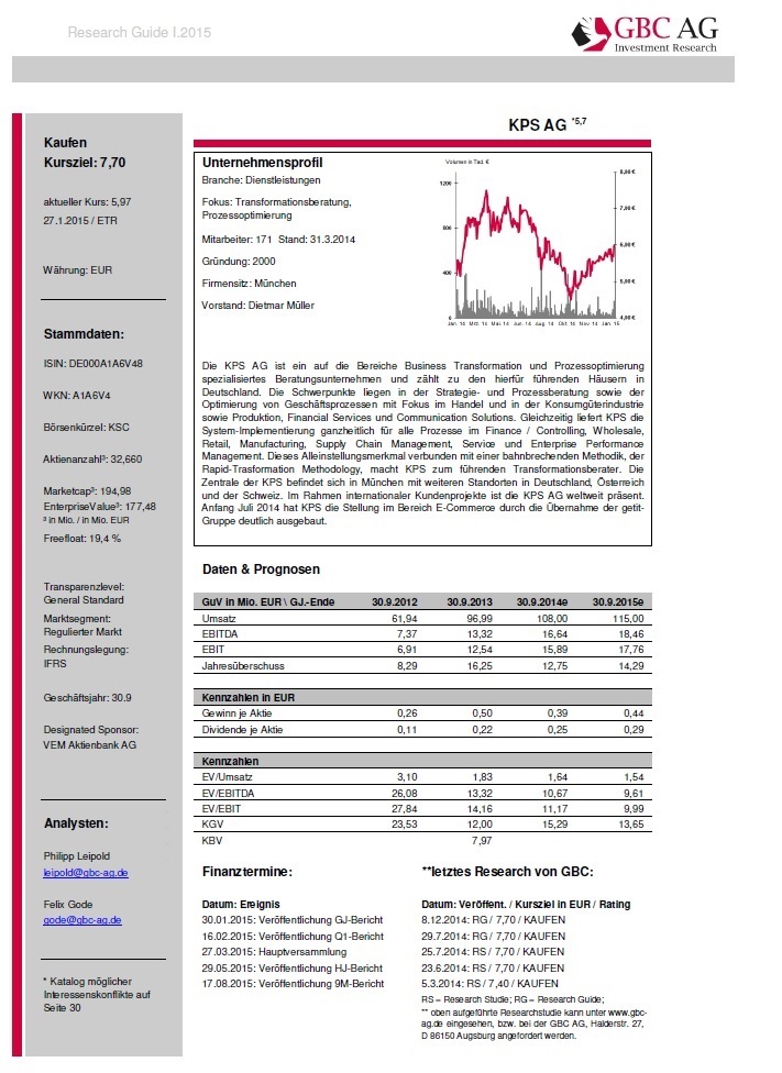 Gründe dafür wurden wurden im Thread bereits genügend genannt. Den Ausblick der Geschäftsleitung auf einen Umsatz von120 Mio in GJ 14/15 halte ich für sehr defensiv ... kann mir nach meinen bisherigen Erfahrungen bereits für Q1 (Zahlen kommen am 16.2.) einen Umsatz von ca. 35 Mio vorstellen. KPS setzt die Berater optimal ein und erreichte eine Auslastungsquote von 95% im GJ ... und das bei Integration von GETIT.