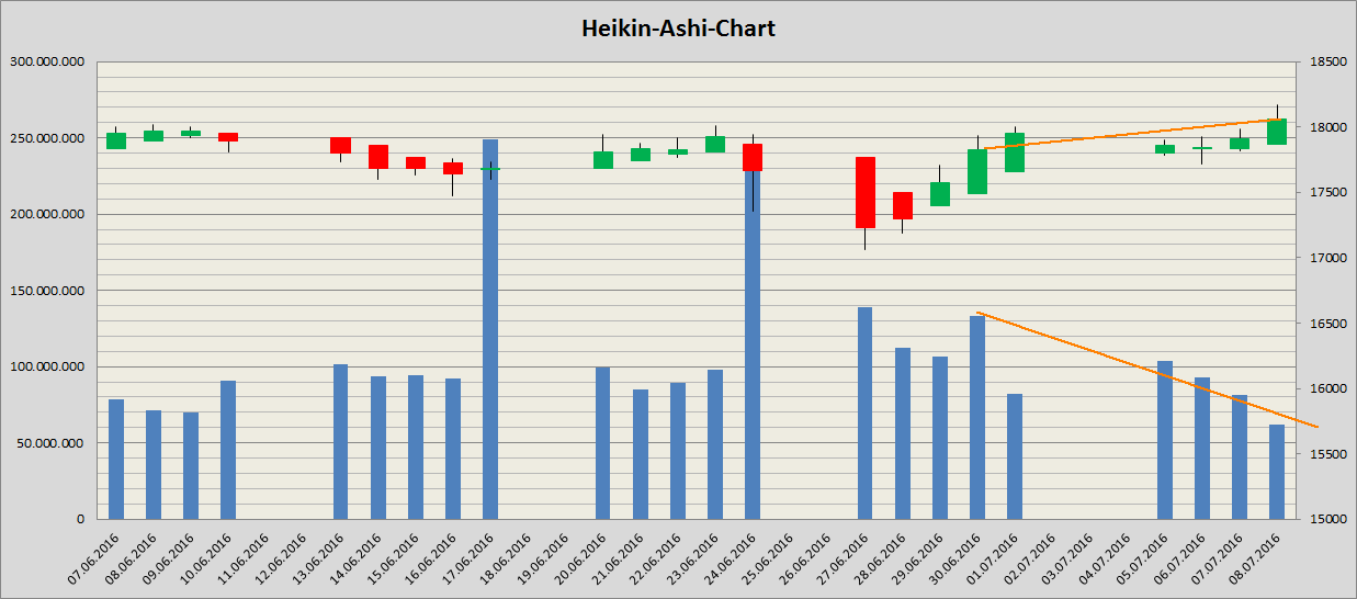 Übrigens, bei 16,50€ könnte man nach Gann Regeln anfangen in die Trendrichtung zu pyramidisieren (Nachkaufen)