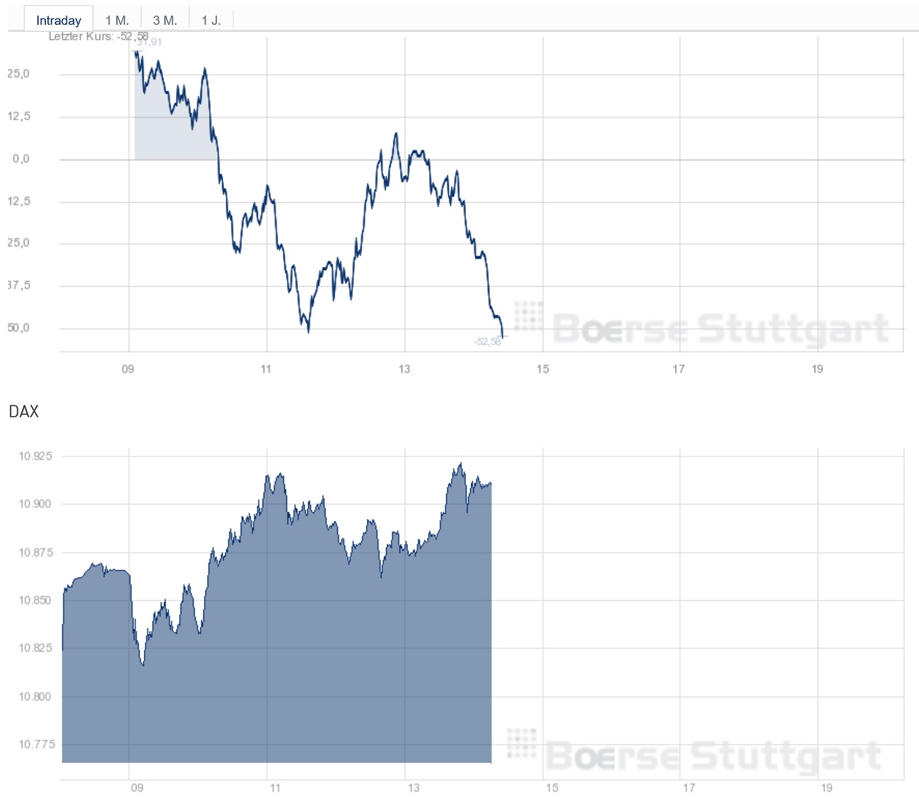 verliert vom hoch mehr als hundert punkte..dax 20 .das hatten wir die letzten Tage zuhauf...wenn der Dow dann wieder nach oben dreht und stärke zeigt machts der dax wieder überproportional weg....