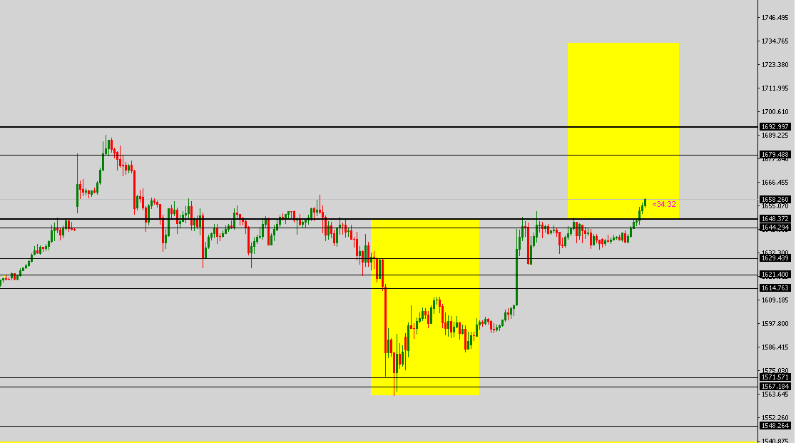 Die 2 dicken Linien sind von 2012 bis 2013. Darin hat sich der Goldpreis aufgehalten. Ging zwar mit dochten drüber und drunter, aber Tagesclose war immer dazwischen.