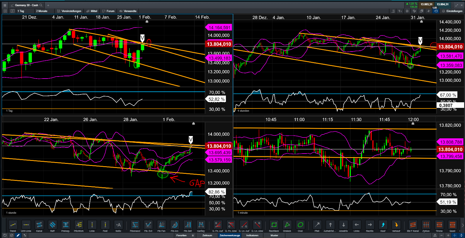 Danke für das Feedback und das "Lob" für den guten Stop... doch gerade dabei bin ich nicht wirklich sicher, die genannten 13950 sind eigentlich schon zu weit gewählt lt. meiner Strategie... sagen wir iwo im Bereich zwischen 13850 und 13950 sollte ich rauskommen, falls es nicht so läuft wie geplant.