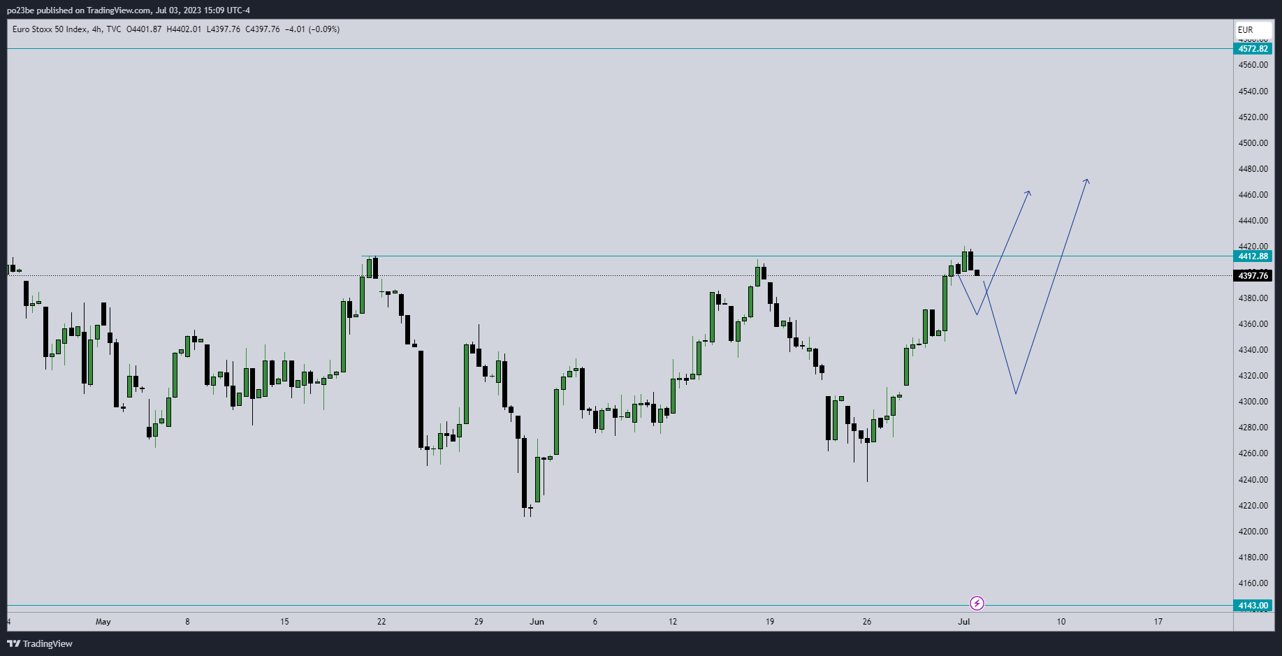 bild, ist das für mich bullish. wir haben nach dem ATH vom 19. mai sellside liquidty herausgenommen. haben danach ein neues ATH gebildet - 16. juni. dax kommt zum daily orderblock zurück (extremer discount bereich), prallt ab. morgen feiertag in den US. erwarte höhere kurse diese woche