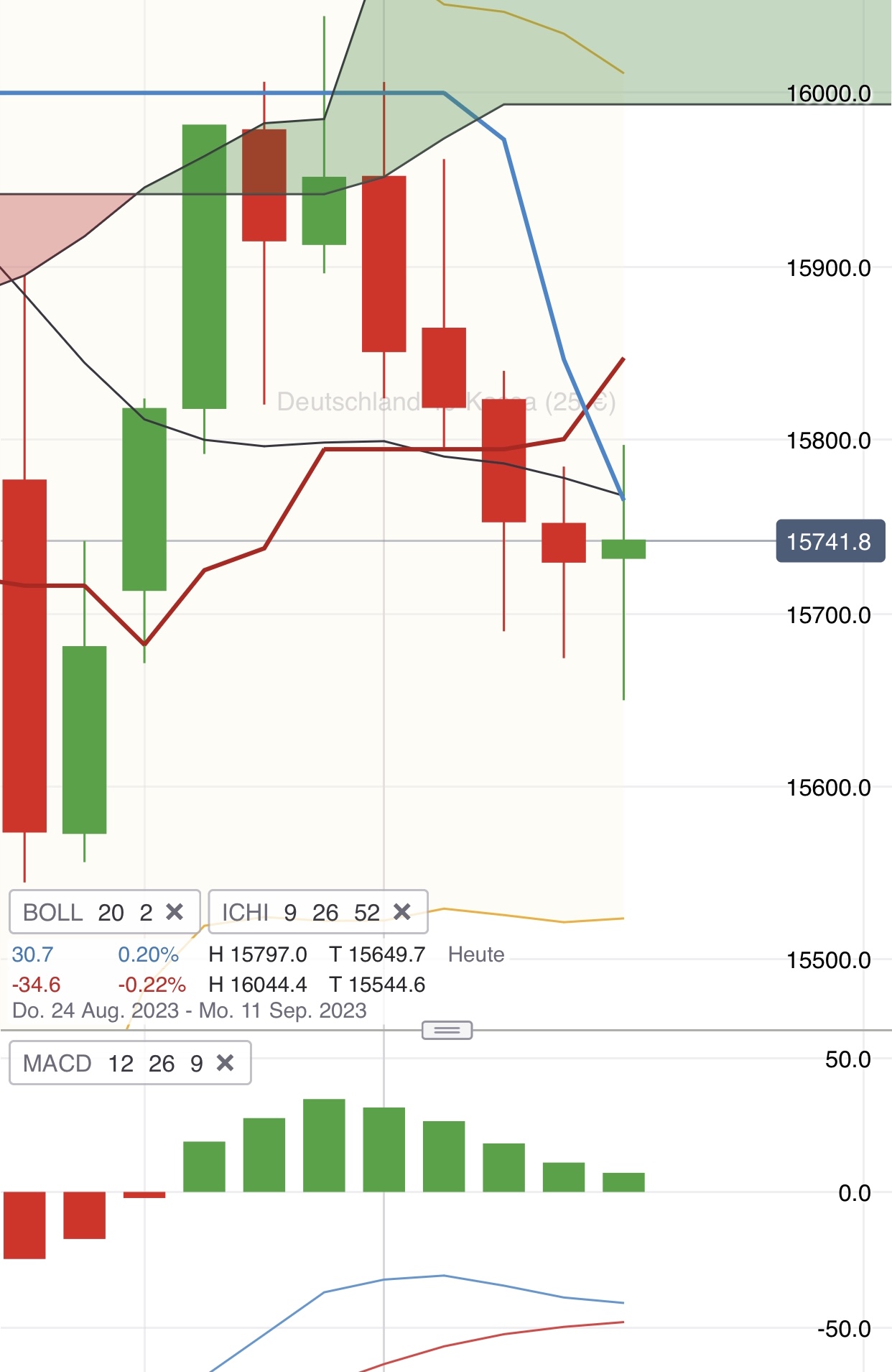 Denn Mini Aufwärtstrend hat er gestern gebrochen. Und heute getestet.
