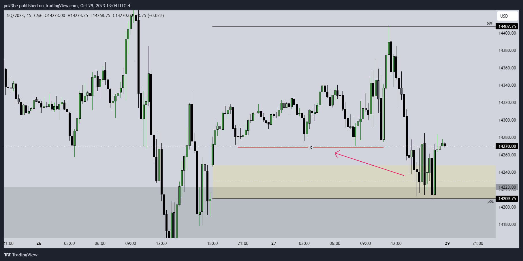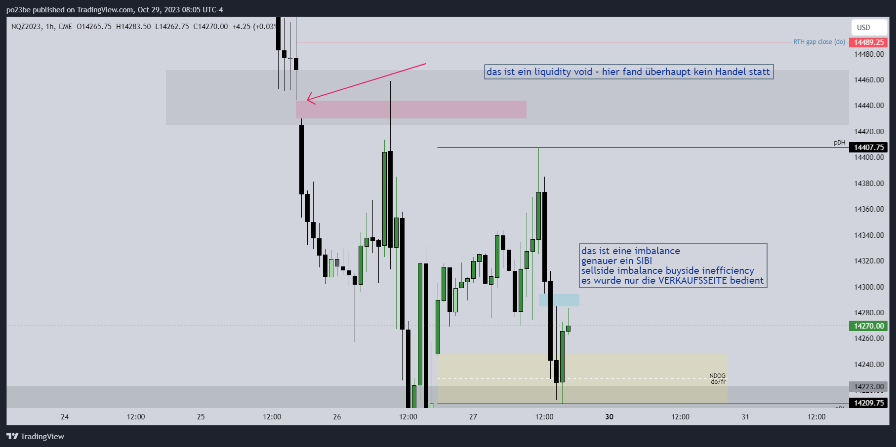 Fdax 9 Uhr. Diese Lows bei 14819 und oberbei gab es das Doppelhoch bei 14840. Er ist über das Doppelhoch, hat sich die buystops geholt und kurz danach bin ich short rein - mit dem Kontext: new day opening gap unterhalb, wir sind bärisch etc. und bin sofort bei 14819 raus. Es sind nicht viele Punkte, aber solche Chancen gibt es täglich, mehrmals